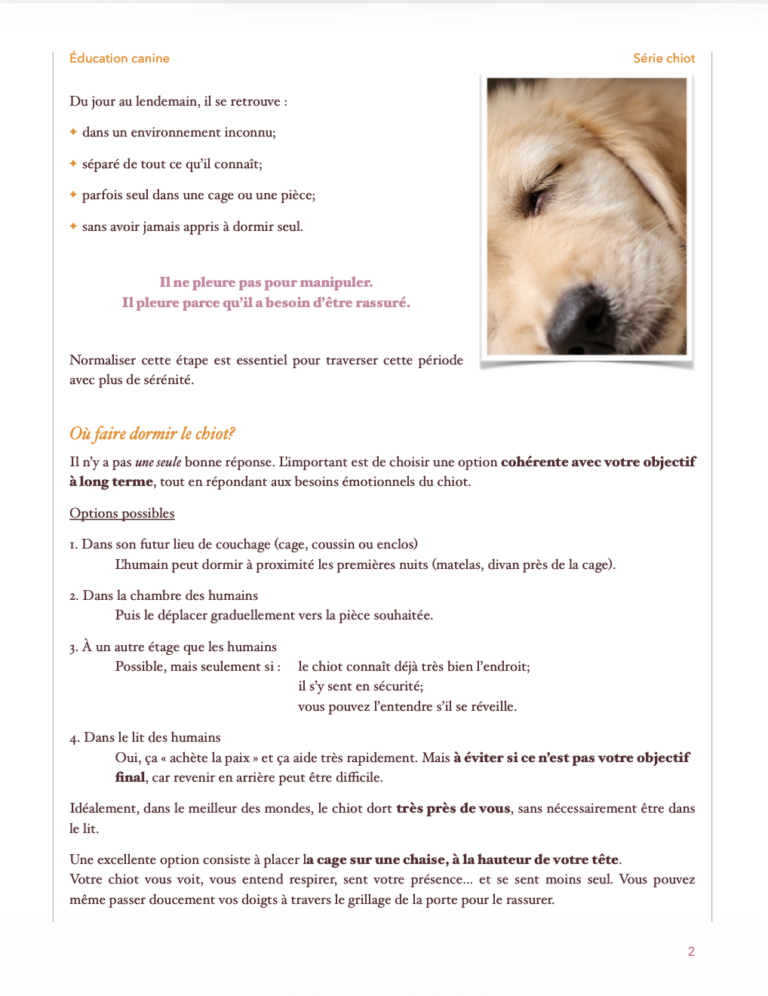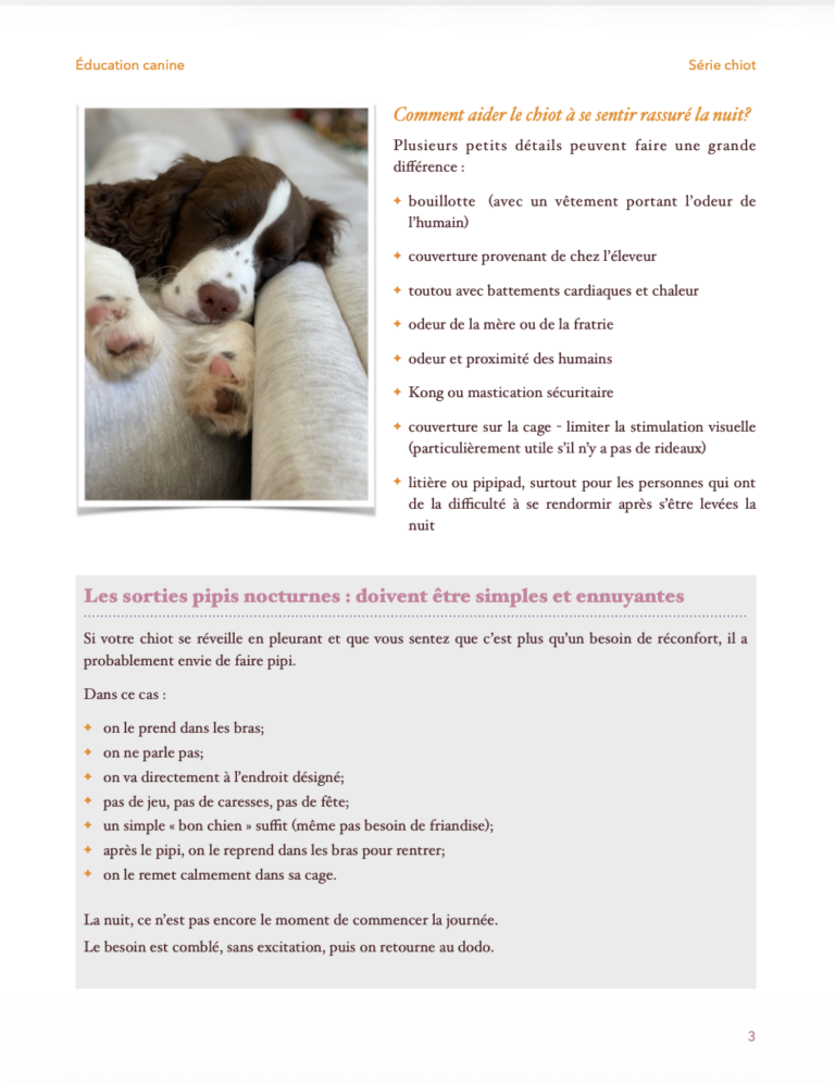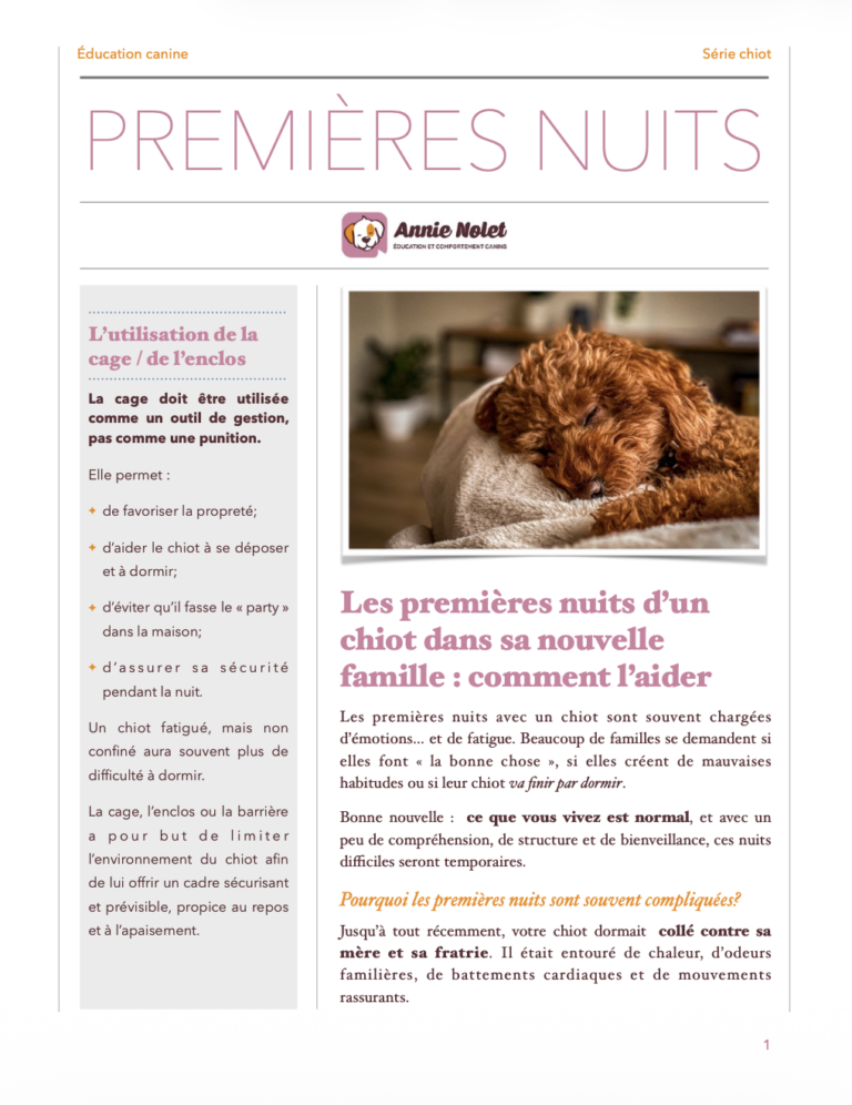 Les réveils nocturnes, les pleurs et les doutes font souvent partie des premières nuits avec un chiot.